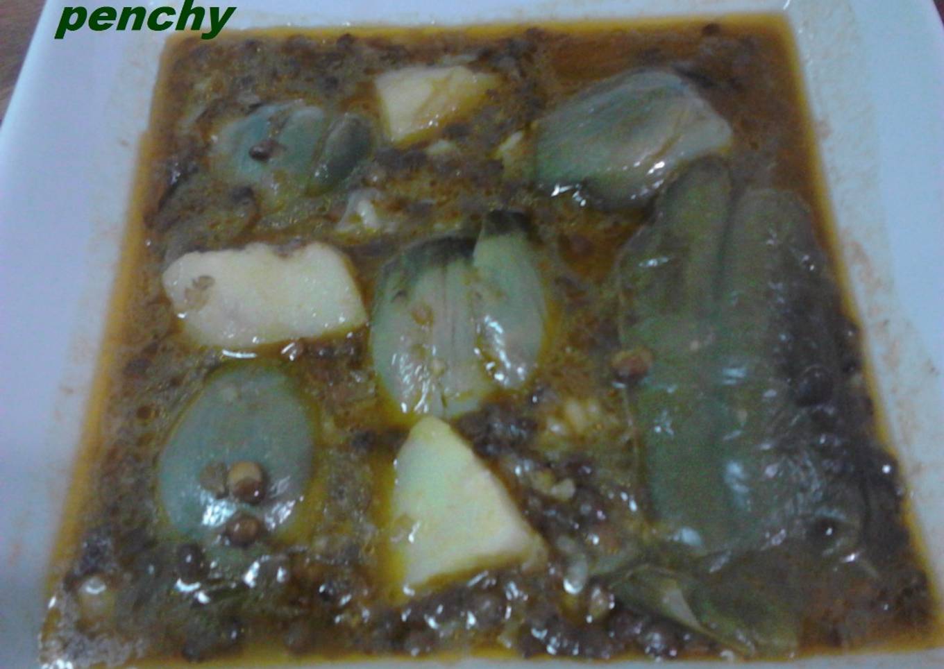 - Ya todo bien pochado añadimos las lentejas, sal, y la patata pelada y troceada, cubrimos de caldo vegetal,o agua, y dejamos cocer a fuego medio 20 minutos,